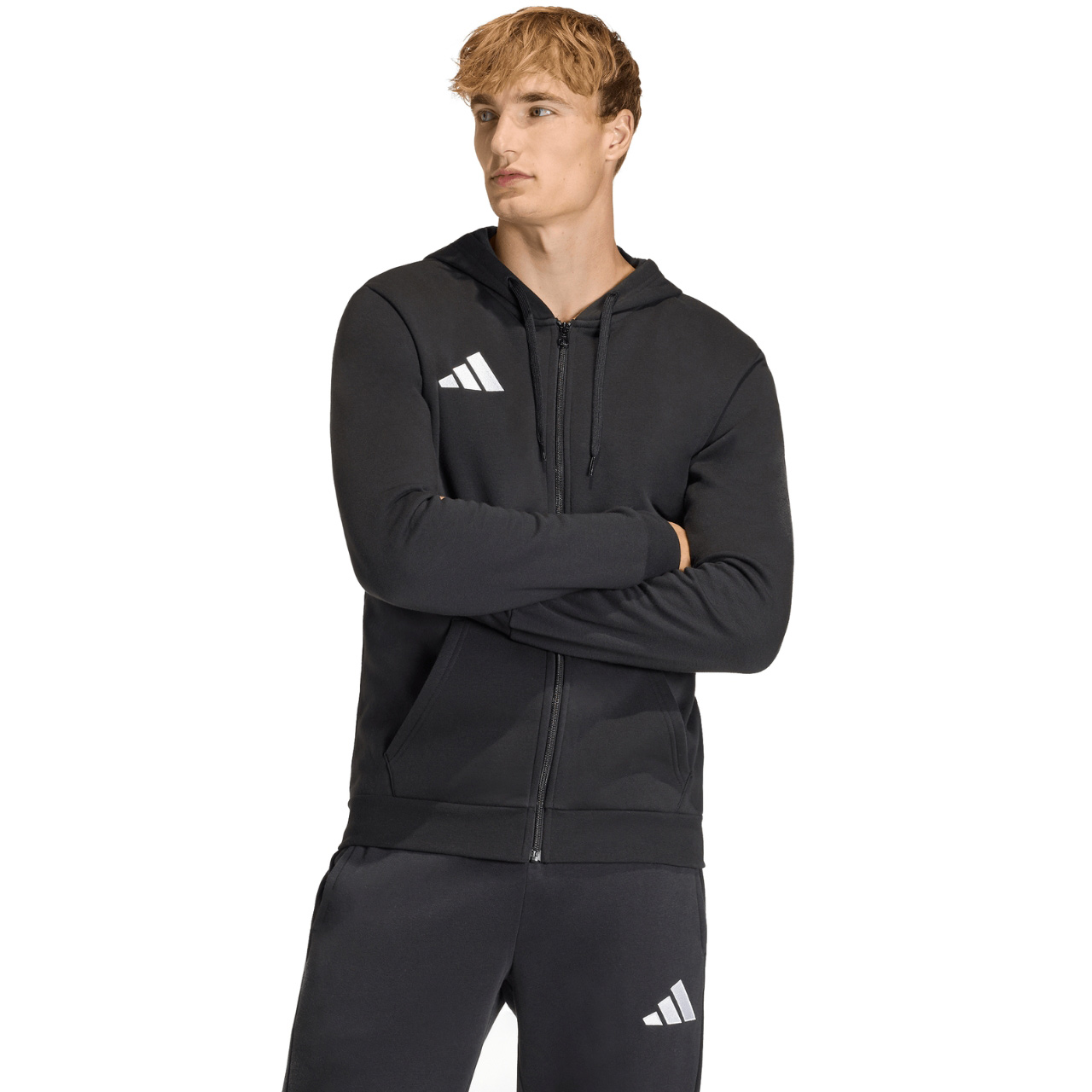 Bluza z najnowszej kolekcji adidasa, w której prostota spotyka się z wydajnością. Miła w dotyku, bawełniana dzianina została połączona z poliestrowymi włóknami. Polarowe podszycie. Standardowy krój. Otwarte kieszenie boczne. Kaptur regulowany za pomocą sznurka. Elastyczne ściągacze przy rękawach i na dole. Niewielkie logo.