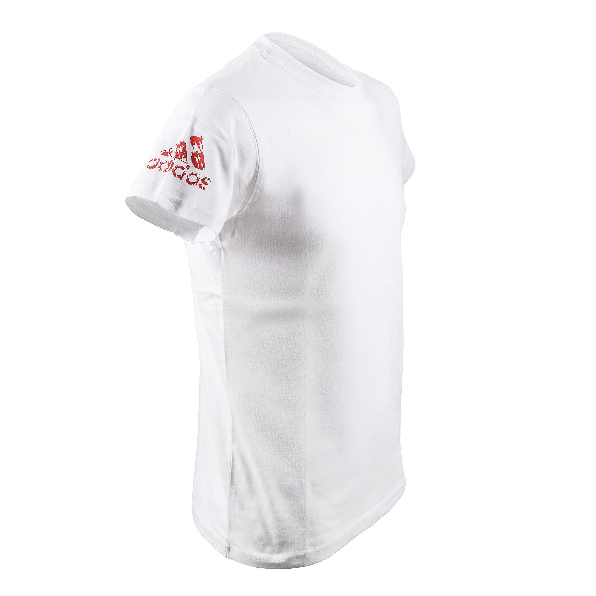 Koszulka doskonale sprawdzi się jako baza stroju sportowego i codziennego. Wykonana z przyjemnej w dotyku bawełny, zapewnia długotrwały komfort noszenia. Standardowy krój i wykończony ściągaczem dekolt umożliwiają swobodny ruch. Na prawym rękawie dedykowane sportom walki - logo adidasa. Duża wolna powierzchnia , idealna pod nadruk klubowy.