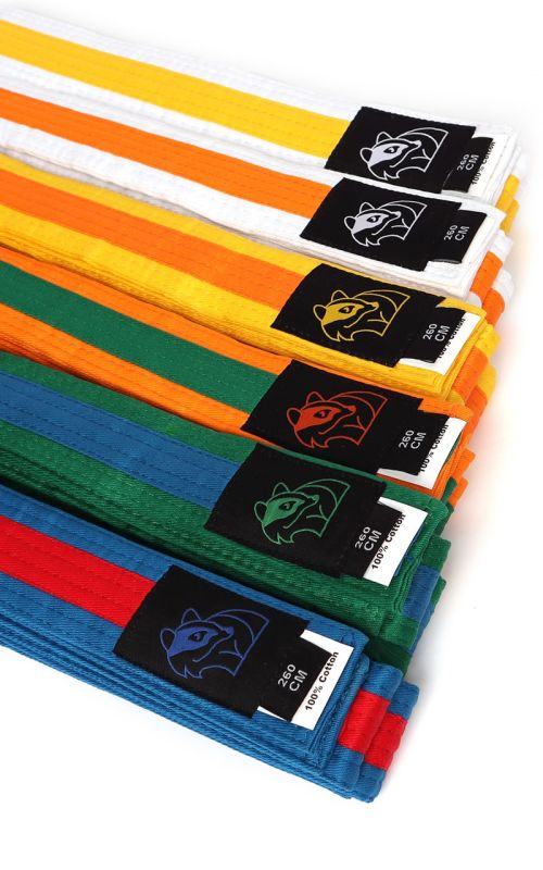 Dwukolorowe pasy firmy DAX Sports przeznaczone dla różnych zawodników sztuk walki.
