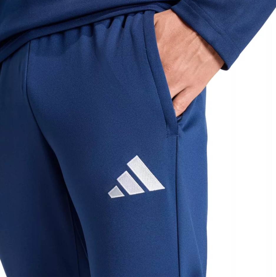 Spodnie dresu treningowego marki adidas. Doskonałej jakości produkt wykonany z dużą dbałością o szczegóły. Zastosowana tkanina gwarantuje najwyższy komfort użytkowania i jej niebywałą wytrzymałość. Prosty, klasyczny krój. Średni stan i talia z regulacja za pomocą sznurka.