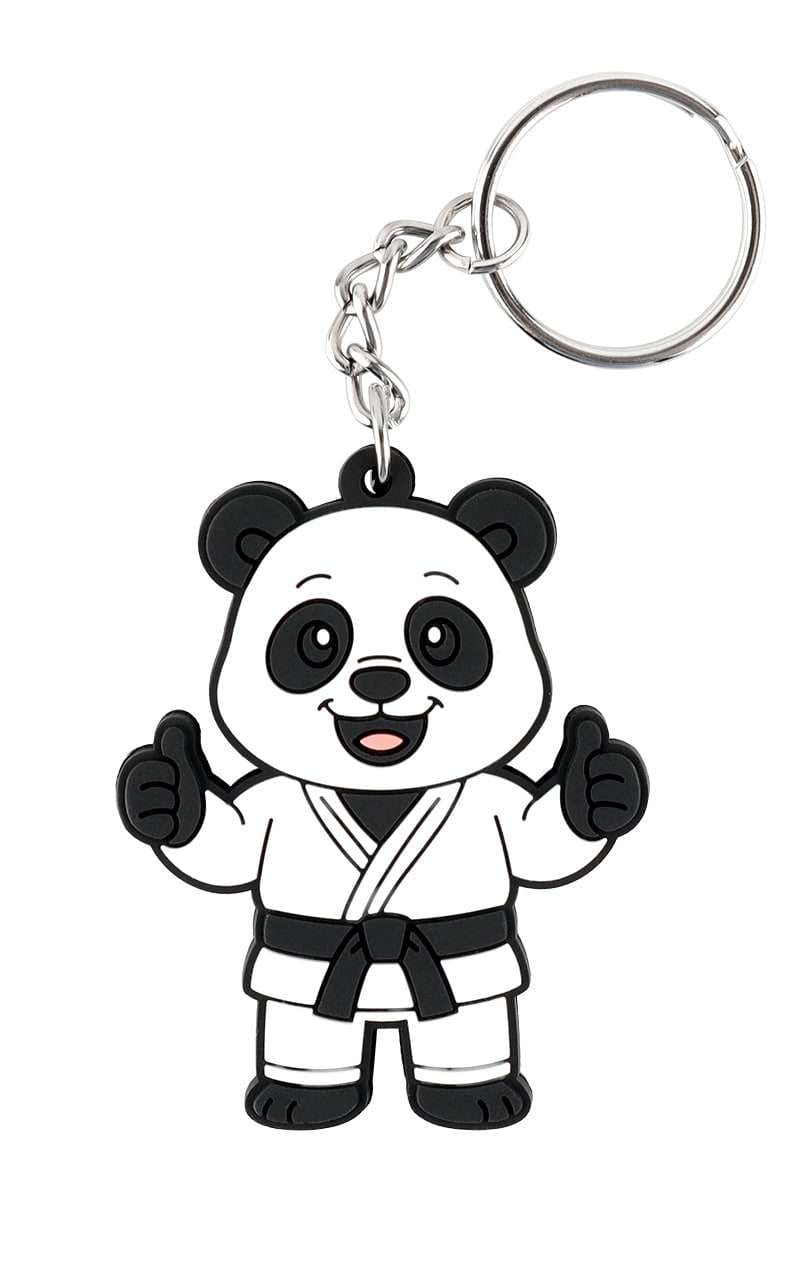 Zawieszka gumowa 5 cm wysokości. Panda ubrana w kimono, przepasana czarnym pasem.