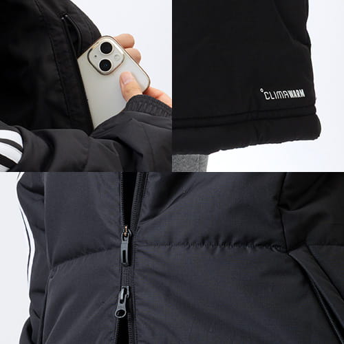 Męski długi płaszcz z kapturem adidas Long Parka to idealny wybór na chłodną pogodę. Przedłużona długość i ocieplenie climawarm skutecznie zatrzymują ciepło i pomagają utrzymać optymalną temperaturę ciała nawet przy niskich temperaturach.
